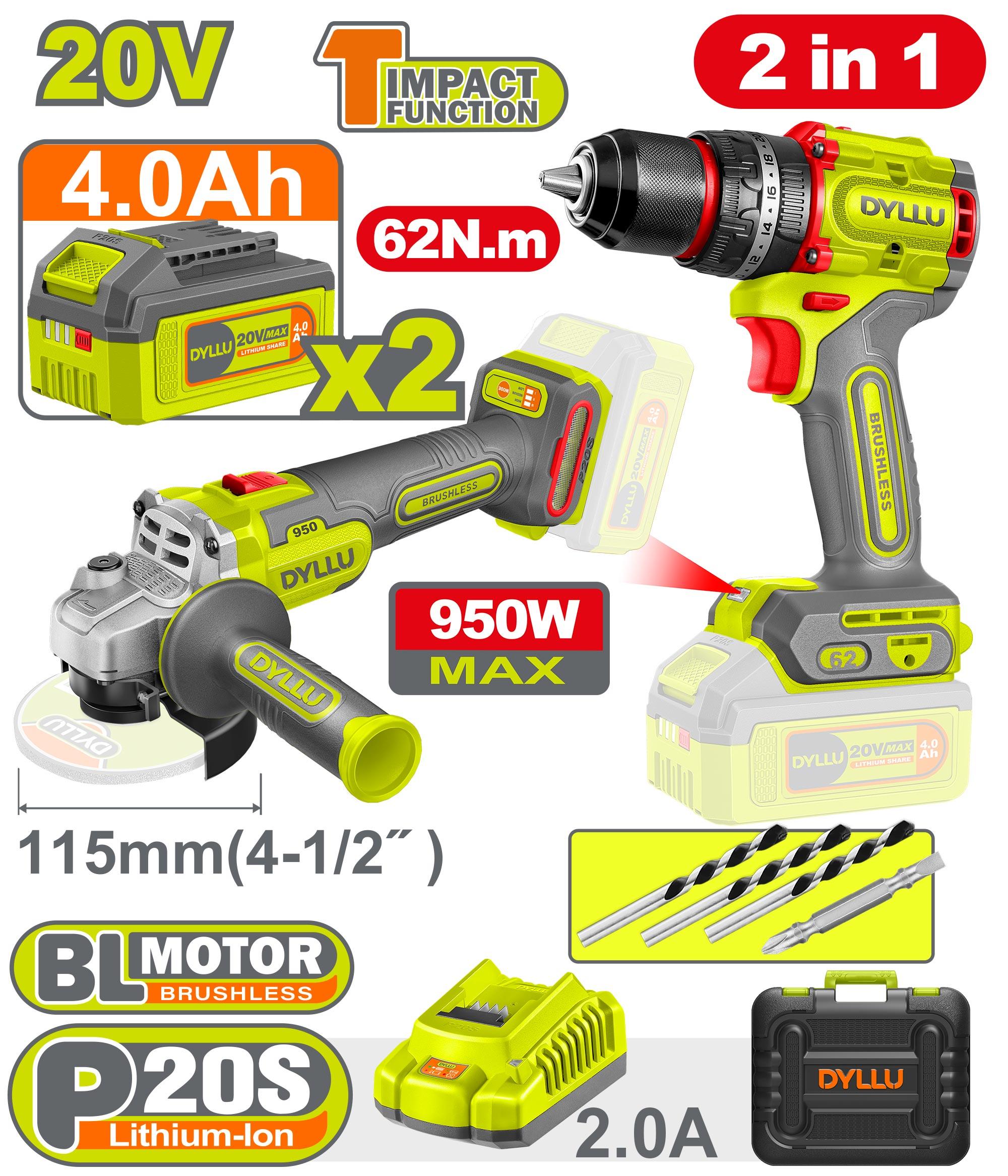 مجموعة فرد شد برشلس امباكت62نيوتن + صاروخ قص وجلخ DTCK20273 – 950w